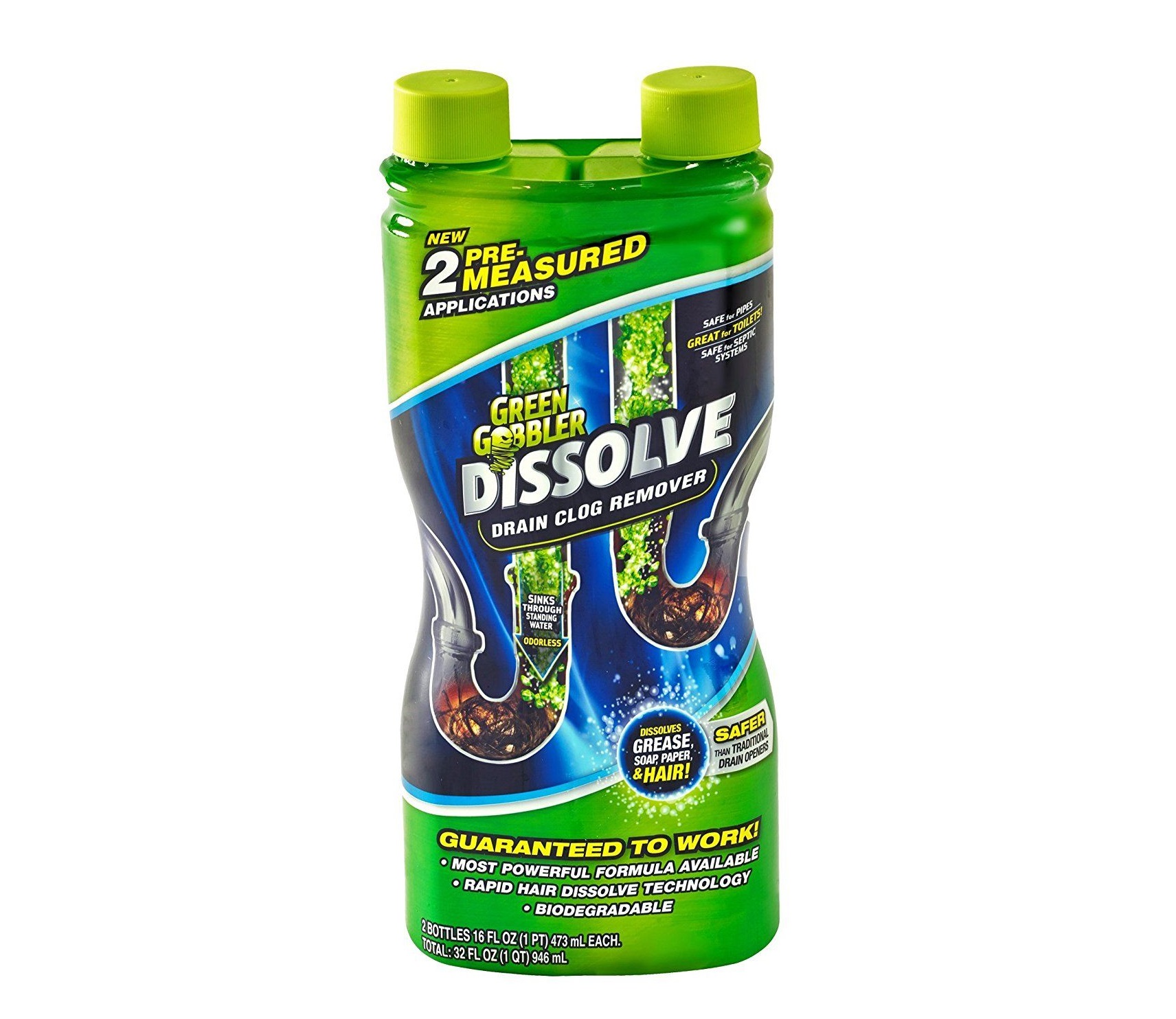 This chemical cleaner is best suitable for clearing a drain blockage caused by grease or oil. It works on mild drain clogs and not tough ones. Unlike most chemical drain cleaners, it is non-caustic, biodegradable and safer to use.